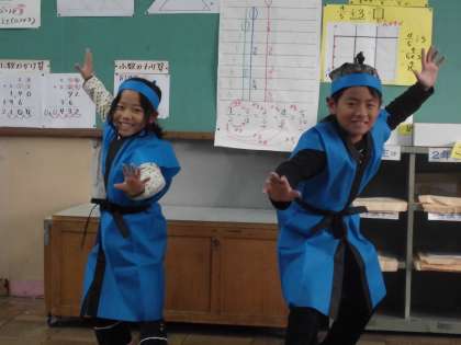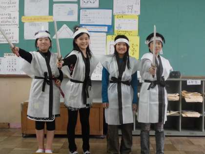 昨日の放課後,劇の衣装合わせをしました。まだ少しそろってないものもありましたが,それらしい雰囲気が出てきました。演技だけでなく,道具や衣装作りも頑張ってきた子ども達。見ている人が,物語の世界に入り込むような発表を目指したいと思います。