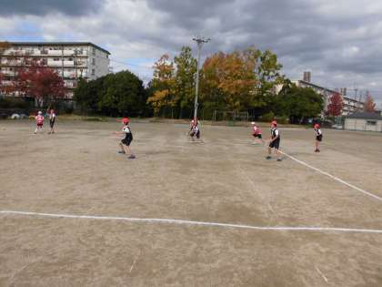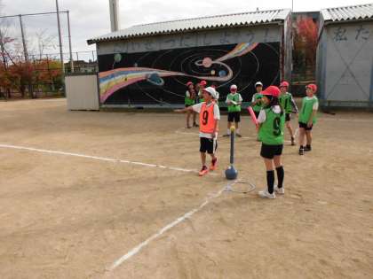 4つのチームに分かれ,ティーボールでリーグ戦を行っています。今日は時間がなく,勝負は来週に持ち越しましたが,動きはどんどんよくなっています。声を出して指示する姿も増えてきました。勝っても負けても,”チームで協力して楽しむこと”を目指します。
