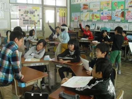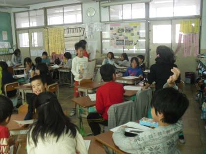 カードもいい仕上がりになり,友達に見せながら発表しました。聞き手は友達の発表の後「ハイッ」と手を挙げ,感想をしっかりと伝えていました。