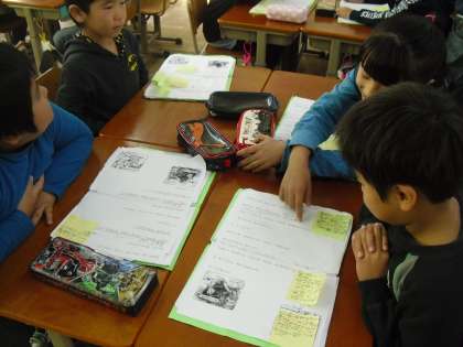 動作をつけたり,表情を変えてみたりしながら,気持ちを込めて音読出来ていました。