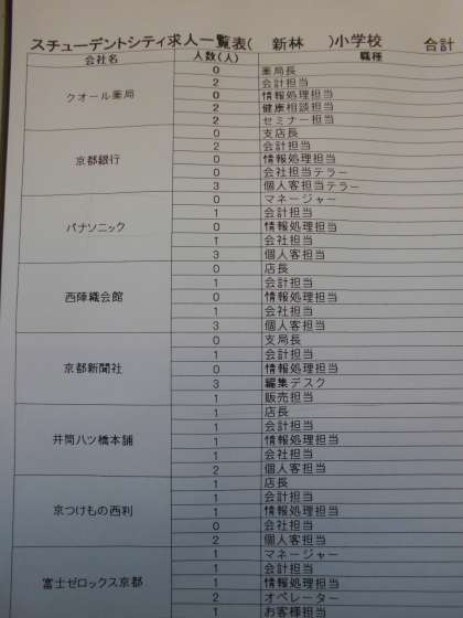 スチューデントシティの学習も,5時間目まで進んできました。今日は,職種について知り,その職種に必要な力やどんな人がふさわしいかを考えました。明日は,自分自身のことを見つめ直し,挑戦したい仕事について考えます。スチューデントシティから「求人票」が届いているので,よく見て考えてほしいと思います。