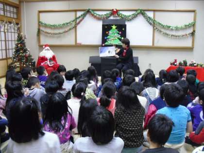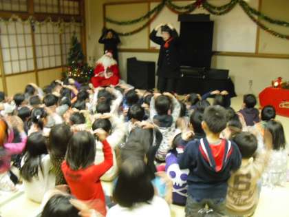 今日の3時間目は『夢ぽけっとお話し会』でした。クリスマスの飾りつけの中,楽しいお話しやゲームをしていただきました。子どもたちとても喜んで熱心に聞いていました。