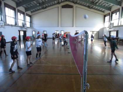 一番の寒さとなった今朝。氷は張っていましたが,天気は良く,「さあ,駅伝だ!」と思っていたら,グラウンドはびしょびしょ。残念ながら,駅伝は明日に延期となりました。急きょ,学年でのバレーボール大会をしました。とても軽いソフトバレーボールなので,痛さがない代わりに,変な方向に飛んでいきます。3分という短時間勝負でしたが,なかなか面白かったです。明日も寒い一日になりそうですが,熱い駅伝大会を期待しています。