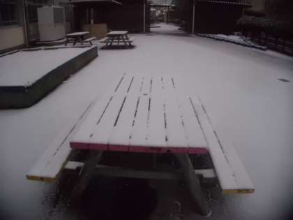 12月18日 おはようございます。今朝は気温が低く,雪が積もっています。道路は滑りやすくなっているので気を付けて登校してください。