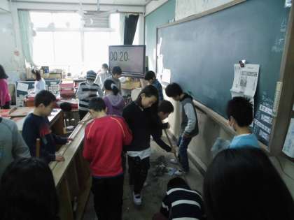 写真は,朝会・大掃除・大縄跳びの様子です。