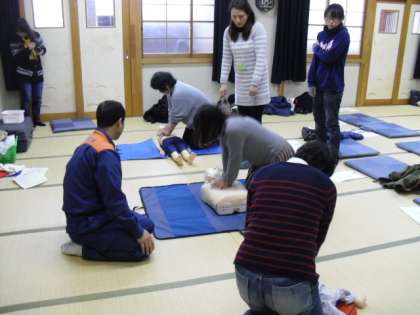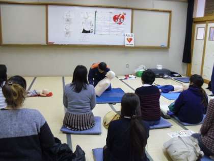 本日午後1時から,PTA保健委員会主催のAED講習会が行われました。消防署の方から使い方を聞いた後,それぞれが実習を行いました。もしもの時に備えて,皆さん真剣に取り組んでおられました。