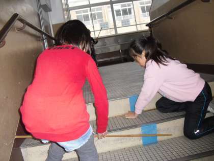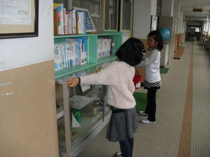 算数の「100cmをこえる長さ」の学習で1mものさしを使っていろいろなものをはかってみました。まず,「わたしのせいぐらいだな。」や「手を広げたぐらいのはばだな。」など予想を立ててから実際にはかりました。予想通りの人もいてずいぶん1mの長さの感覚がわかってきたようでした。