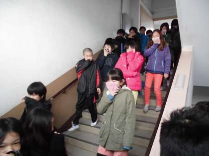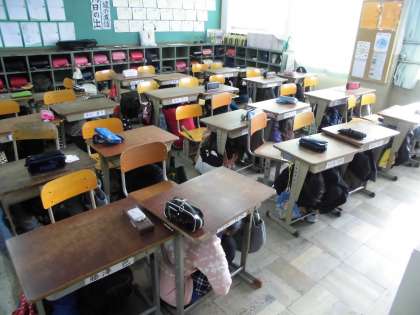 教室では机の下に隠れ、静かに運動場に避難することができました。
