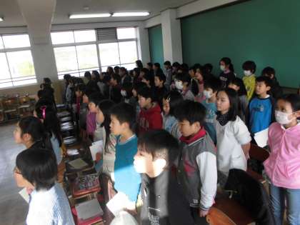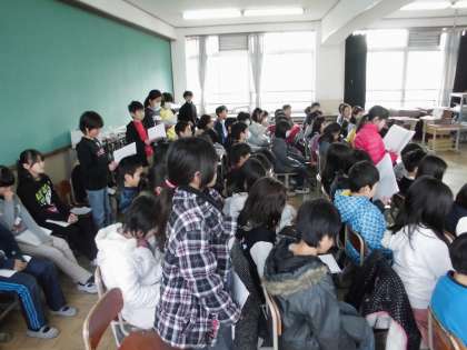 今は18日(水)の「2分の1成人式」に向けて練習しています。生まれたときから今までをふり返り,そして10年後の自分を想像して,8つの作文を書きました。式では,その8つの作文を「よびかけ」の言葉の中で,発表します。今日はその「よびかけ」の言葉を最初から最後まで,通して練習しました。