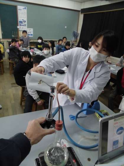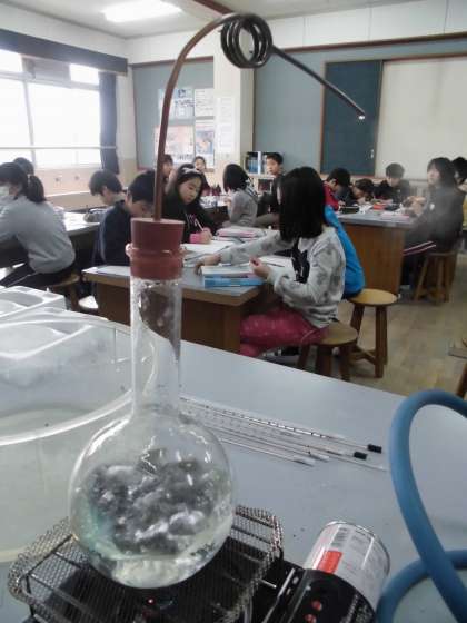 「すがたをかえる水」の学習をしています。今日は「水がふっとうしたときに出てくるあわは何だろう」という実験のまとめをしました。沸騰している水の中から出て来る泡は,水が姿を変えたもので,水蒸気である。水蒸気は目に見えない。水蒸気は冷えるともとの水にもどる。湯気も水蒸気が冷やされて,小さな粒になったものということがわかりました。