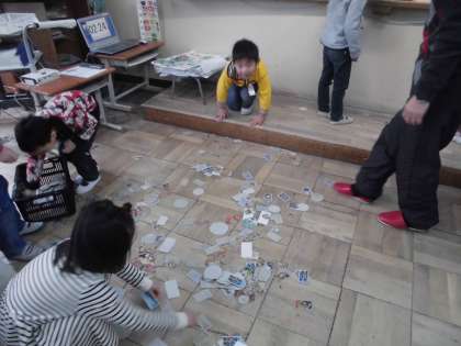 地域の方々が来てくださって,いろいろな昔遊びを教えていただきました。お手玉,おはじき,あやとり,輪投げ,けん玉,こま,はねつき,ヨーヨーなど11種類の遊びを体験することができました。技ができるようになった子どもがたくさんいて,みんなとても喜んでいました。