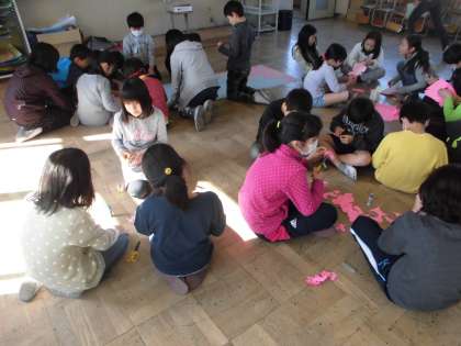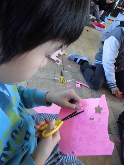 「2分の1成人式」の飾りを作りました。4年生になると,はさみを上手に使って紙を切ることができるのはさすがです。ステキな飾りになりました。