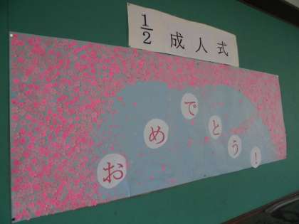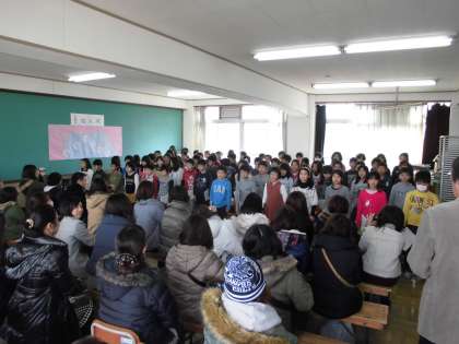 今年度最後の授業参観・懇談会でした。1/2成人式では,子どもたちの歌,生まれたときから今までをふり返り,そして10年後の自分を想像した,8つの作文,「よびかけ」の言葉をお聞きいただきました。お家でも,この10年をふり返ってみてはいかがでしょうか。