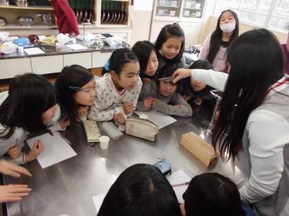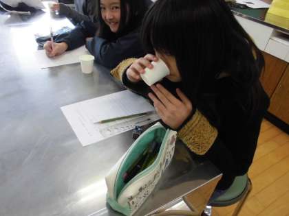 栄養教諭の吉谷先生に来ていただいて,「日本食のよさ」についてしました。ユネスコの文化遺産に選ばれたことや,日本から発見された「旨味」など,初めて知ることが多くありました。昆布やかつおからとった「だし」を試飲し,日本食の味の深みを感じることも出来ました。