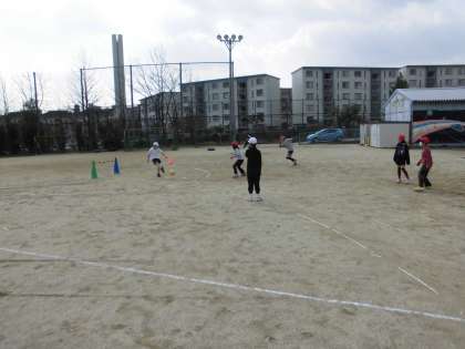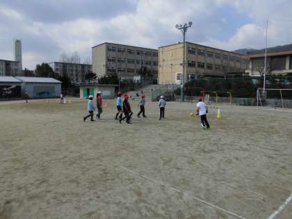 サッカーの学習です。自分たちで用意をして,寒さに負けず,元気にボールを追いかけました。