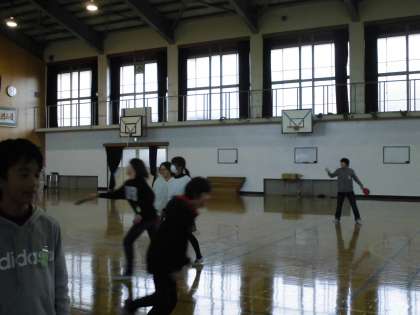 体育館のフロアを使ってニュースポーツが生まれていました。