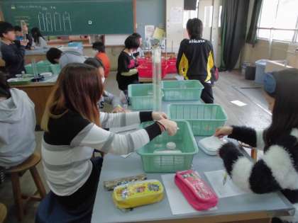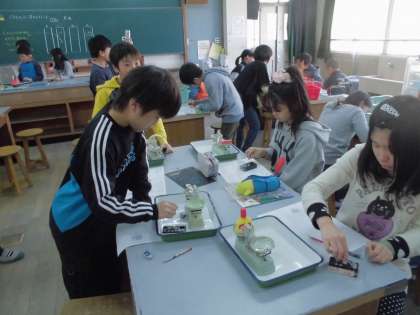 今日で5年の理科が最終日となりました。そこで、これまでのことを思い出し、自分で、一人で考え、操作することを重きに置いての復習となりました。ろ過ってどんなとき行うんだったのだろう、そして器具は何が必要だっただろう・・、メスシリンダーの使い方は・・、電磁石でクリップをたくさんつけるには・・、顕微鏡で色々なプレパラートを見るには・・、上皿てんびんではかるには・・などなど、コーナーを回っての復習となりました。また、この培った理科の力を生かして6年生も頑張ってほしいと思います。