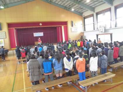 卒業式に向けての合同練習が行われました。歌の練習や言葉の練習をしました。
