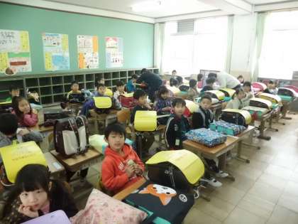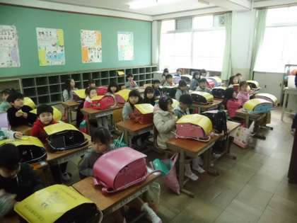 朝9時に教室にいきました。どちらのクラスの子どもたちも大きな声で挨拶をしてくれました。少し緊張した様子でしたが,みんな元気でした。