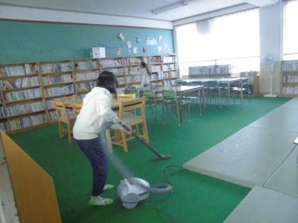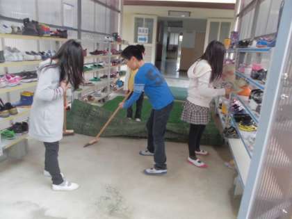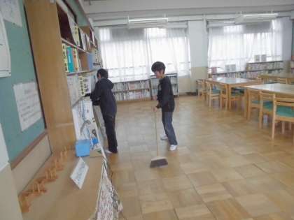 今日から給食・掃除が開始しました。新しい分担場所が決まり,それぞれの場所で,はりきって掃除をしていました。