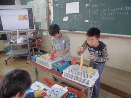 1立方センチメートルのブロックがいくつあるかで、体積を求めることができるということがわかってきました。堆積は同じでも、色々な形があることも分かってきました。