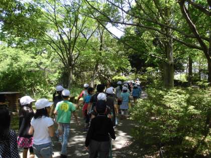 公園には木がたくさんあり,その周りには団地があるということを発見することができました。