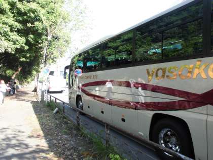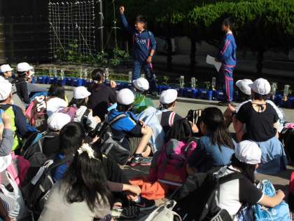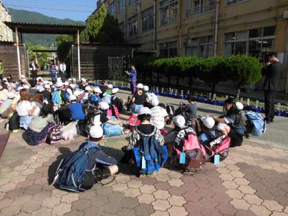 出発式の後元気にバスで出発しました。今日はお天気が良いので,名古屋城や名古屋市立科学館見学,地引網体験など楽しく過ごしてほしいと思います。