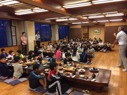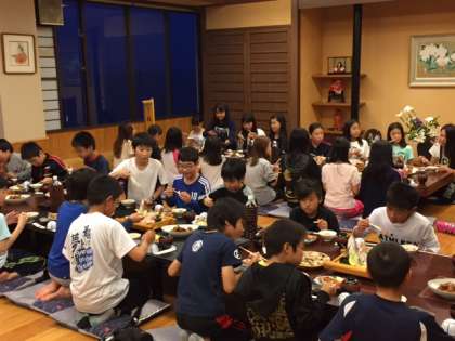 予定通り7時から食事をいただきました。子どもは何回もおかわりをしていました。