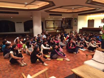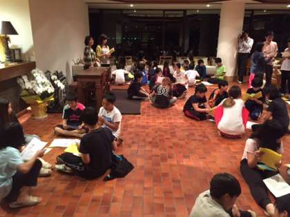 昨夜21時。各グループ毎に今日1日の反省をしました。この後、部屋に戻って寝る準備をしてみんな静かに?寝ました。