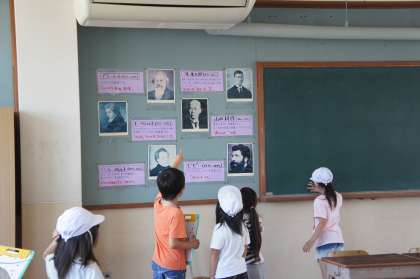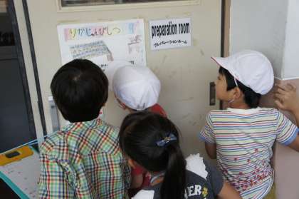 がんばってつくった看板を見ながら,教室の説明をしました。