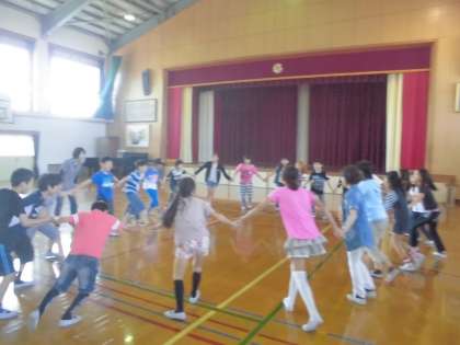山の家が近づいてきました。キャンプファイアーで行う「マイムマイム」をみんなで練習しました。グループやクラス,全体でも練習して,ステップもバッチリ覚えられました。本番はみんなで火を囲みながら踊ります。思いきり楽しみましょう!