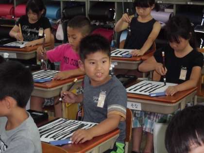 子どもたちが楽しみにしていた毛筆の学習が始まりました。今日は1回目なので,用具の名前や準備の仕方,姿勢や筆の持ち方を学習し,実際にいろいろな線を書いて筆の感触を確かめました。後片付けまで自分たちでしっかりできました。来週にはいよいよ「一・二」の文字に挑戦します。