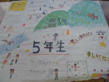 学年の旗も完成しました。係の用意が早く終わった人で協力しながら,一生懸命作ってくれました。明日からの4日間,たくさんの学びのある楽しい山の家にしていきましょう!キーワードは・・・「温故知新」!!