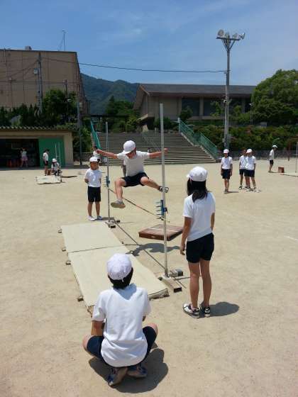 そんな暑い中、体育で「走り高跳び」の学習を行いました。