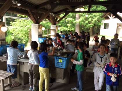 ただ今野外炊飯中です。おいしいすき焼き風煮ができるといいですね。