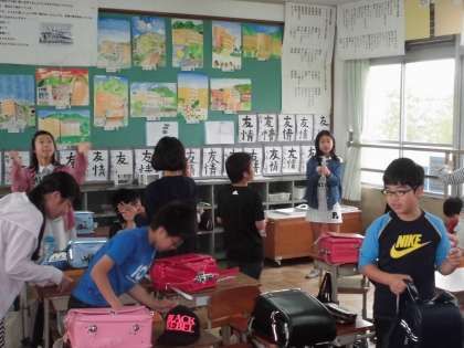 最後は、教室でオリジナル紙とんぼを飛ばしました。