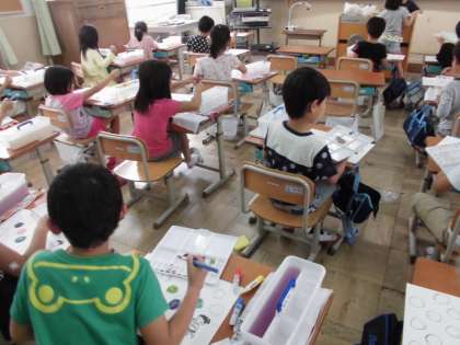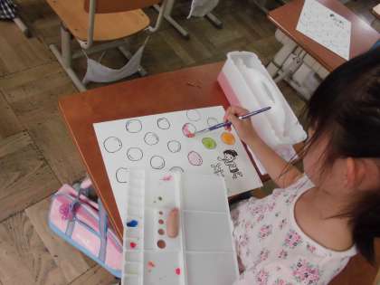 今日の図工は,初めての絵の具です。