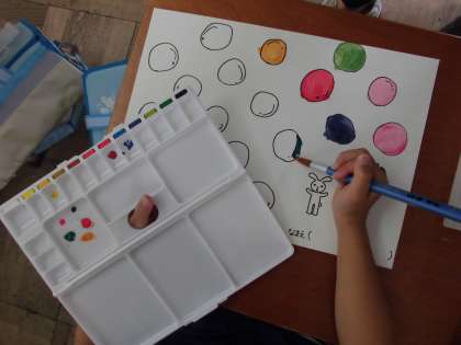 絵の具の準備の仕方から学習しました。