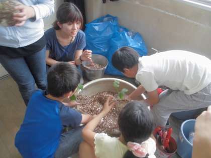 植物の発芽についての学習が終わり、次は、植物の成長には何が必要なのかを調べる実験に入ります。今日は、その準備を手際よく行っていました。