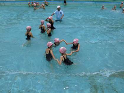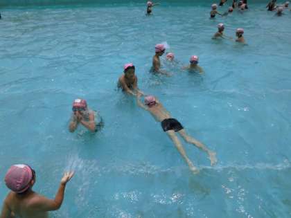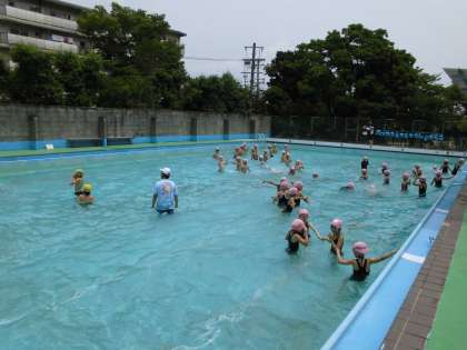今日は,ペアやグループで協力して,水遊びに取り組みました。