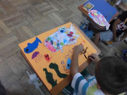 絵の具をつかっての初めての作品を描きました。