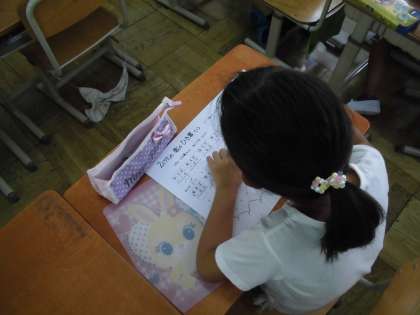 学習会では,自分で算数や国語のプリントに取り組みました。