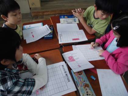 社会科の学習の買い物調べの結果をまとめてグラフにしました。クラス全体でまとめてみると,近くのスーパー(コープやAコープ)での買い物が一番多く,子どもたちは驚いていました。「桂川イオンが一番多いと思ったのにどうしてだろう・・・?」次なる学習課題が生まれました。どうして近くのスーパーマーケットで買い物をすることが一番多いのか。その理由を考え,グループごとに話し合いました。15日の見学に向けて,熱心に学習しています。