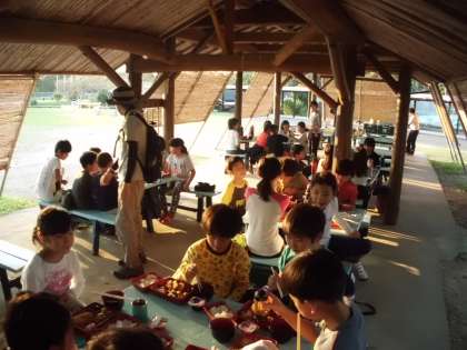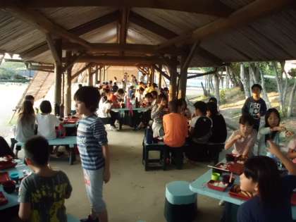 5時半から夕食です。ご飯とみそ汁をおかわりする子どもが多かったです。お腹一杯になりました。