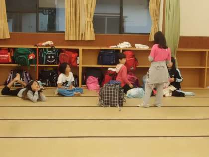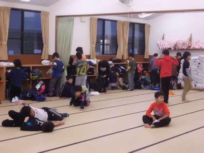 朝起きて、寝具を片づけたり、顔を洗っています。あまり寝ていない子どももいます。
