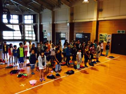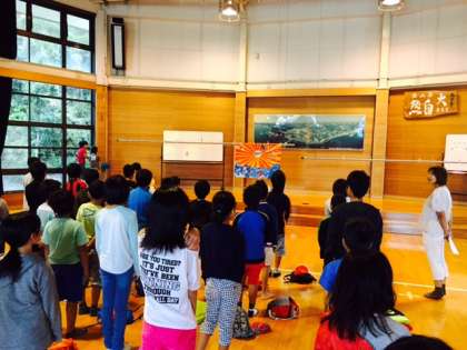 ホールで朝の集いをしました。