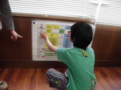 仕事中は,仕事の進行表をチェックしながら仕事を進めました。