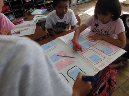 そのあとで行ったグループ学習では,自分ができていることとできていないことを付箋に書いて交流し,それぞれの意見を仲間分けし,グループの中でこれから取り組もうと思うエコ目標を決めました。そして発表をして決意を新たにしました。日々の生活に表れてくれるとうれしいですがいかがでしょうか。