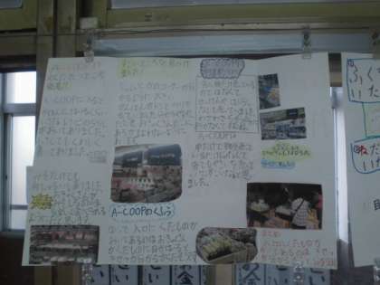 社会科で調べて分かったことを「Aコープのひみつ」として,写真や絵を使ってリーフレットにまとめました。