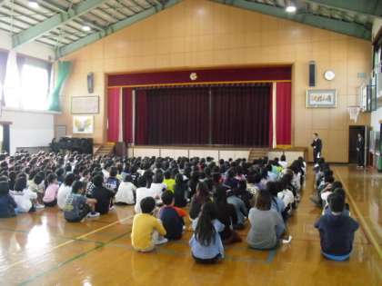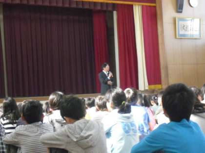 3日間の休みを終え,今朝は後期始業式でした。学校長からの話を聞いた後,土曜日に行われました全市バレーボール交流会の表彰式がありました。5・6年女子がブロック優勝しました。良い季節です。これからも,勉強に,スポーツにとがんばってほしいと思います。